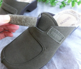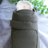 甲の高さに合わせて微調整が可能なWの面ファスナーベルト。 つま先はゆったりでも、甲でしっかり足をホールドします。