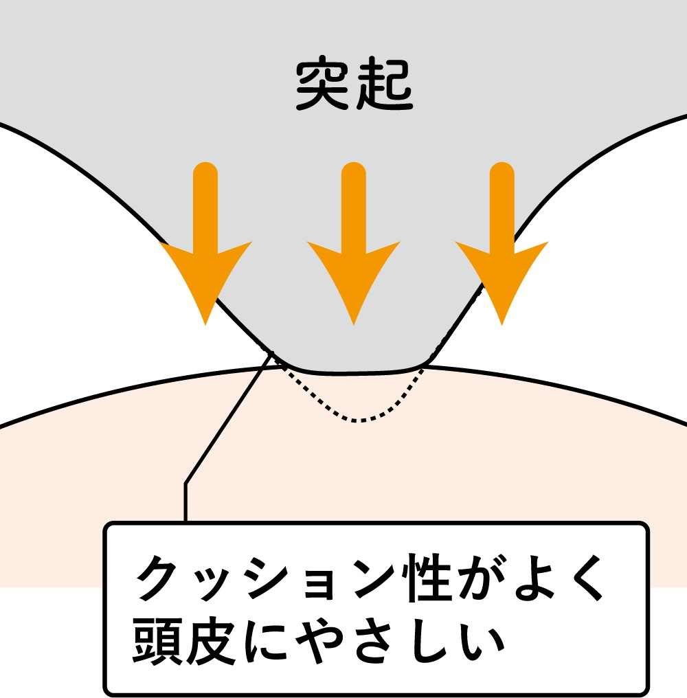 弾力性の高いクッション素材が頭皮にやさしくフィット。
