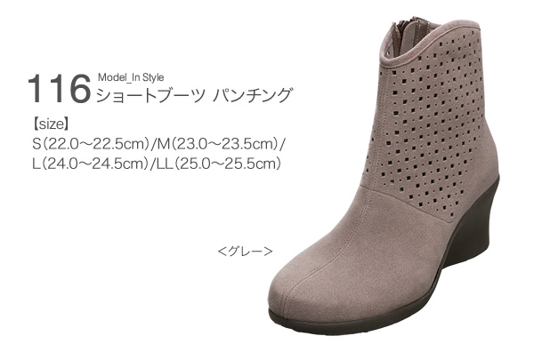 116パンチングブーツは甲の内側にゴムバンドを内蔵しています。