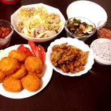 今日は主人が風邪でスポーツドリンクをと頼まれついでに買い物してきてからの晩ご飯でした*金時豆*ホタテフライ風*キャベツと豚のにんにく醤油炒め*ゴボウの甘辛揚げ*キュウリの酢の物*イカ明太塩辛*しらすでした出来合いにも力を借りーのホタテ風フライ、ホタテフライだと思って買ったらかまぼこでしたビビった… 2014/02/11