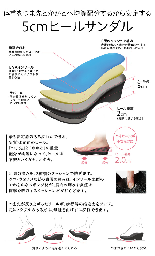 「どうしても履く靴がない」「痛みから解放されたい」すべての女性の悩みを解決するサンダルやシューズをお届けします。
