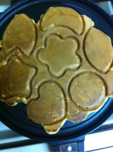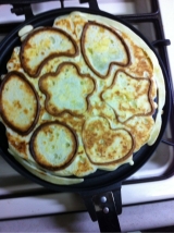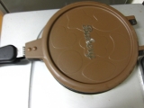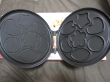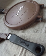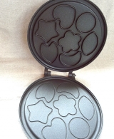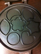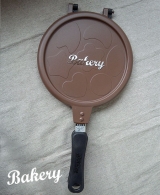 ごはんをはさんで焼くと、かわいい形のおせんべいが作れる両面焼き用のフライパンです。