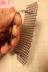 メッシュ本体にハンドルが付いているので、力を効率よく伝えることができます。
