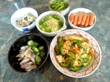 今日のお弁当<木耳と豚肉の中華風炊き込みご飯お弁当&今日の1品など♪>ふっと国産木耳(乾物)あったなと思い出し、豚肉と生姜で中華ご飯♪胡麻油を効かせて、食べ応えのある炊き込みご飯に♪炊き込みごはんにするとおかずが少なくて良いから、時間の節約になりますね(笑)あっつ、もち米入れたら良かった!目… 2013/06/28