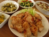 いつもは 個々にもってますが、、、、面倒だったのでどどんと ワイルド盛りちょっと?かなり?盛り付け雑雑ですが汗 たっぷりのニンニクとショウガを使った 胸肉の唐揚げ風をメインに これは から揚げ食べたいけれど、、、揚げるのがちょっとって 方にお勧め カロリーも抑… 2014/07/15