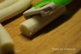 白髪ネギカッターでネギを繊維に沿って裂き、白髪ネギを作ることができます。