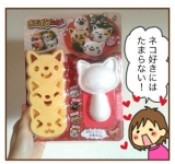 アーネスト株式会社 さんより 1/20新発売されたばかりのこの商品が届きました♪ その名も「おむすびニャン」 ネコちゃんおむすびが簡単に作れるアイテムです! ネコ型は3つのパーツに分かれています そしてこちらは海苔カッター いろんなネコちゃんの表情が作れます こっちはチーズ… 2015/03/05