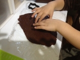 ココア生地とプレーン生地を型で抜き、乗せて焼くだけ。