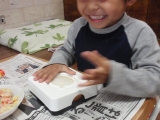 アーネストさんから、「食パンダ」が届きました〜〜ww 今回は、子供と一緒に作ってみました! 材料はこれ〜〜 ポテトサラダと胡瓜です 顔は私が押しましたが、サンドは子供にやってもらいました ぎゅ〜〜〜っと押します 顔の押し方が甘かったのと、作り方をすこし間違え… 2012/05/04