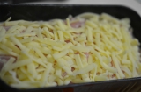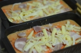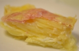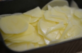 トースターパンで、ジャガイモのミルフィーユグラタンを作ってみました 【食材】(2人前トースターパン1個分) ■ジャガイモ2個 ■ベーコン2枚 ■溶けるチーズ大4くらい □牛乳100cc □卵1個 □コンソメ顆粒小1 □にんにく(チューブ)2センチほど 2012/12/01