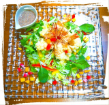 クルミ、ピーナッツ、アーモンドを使用し、マヨネーズベースで仕上げたドレッシングです。クラッシュしたクルミを使用していますので、食感も楽しむことができます。程よい甘さでコクがありますので、サラダなどの他、和え物、揚げ物など様々な料理にお使いいただけます。