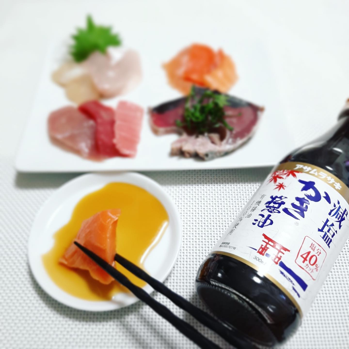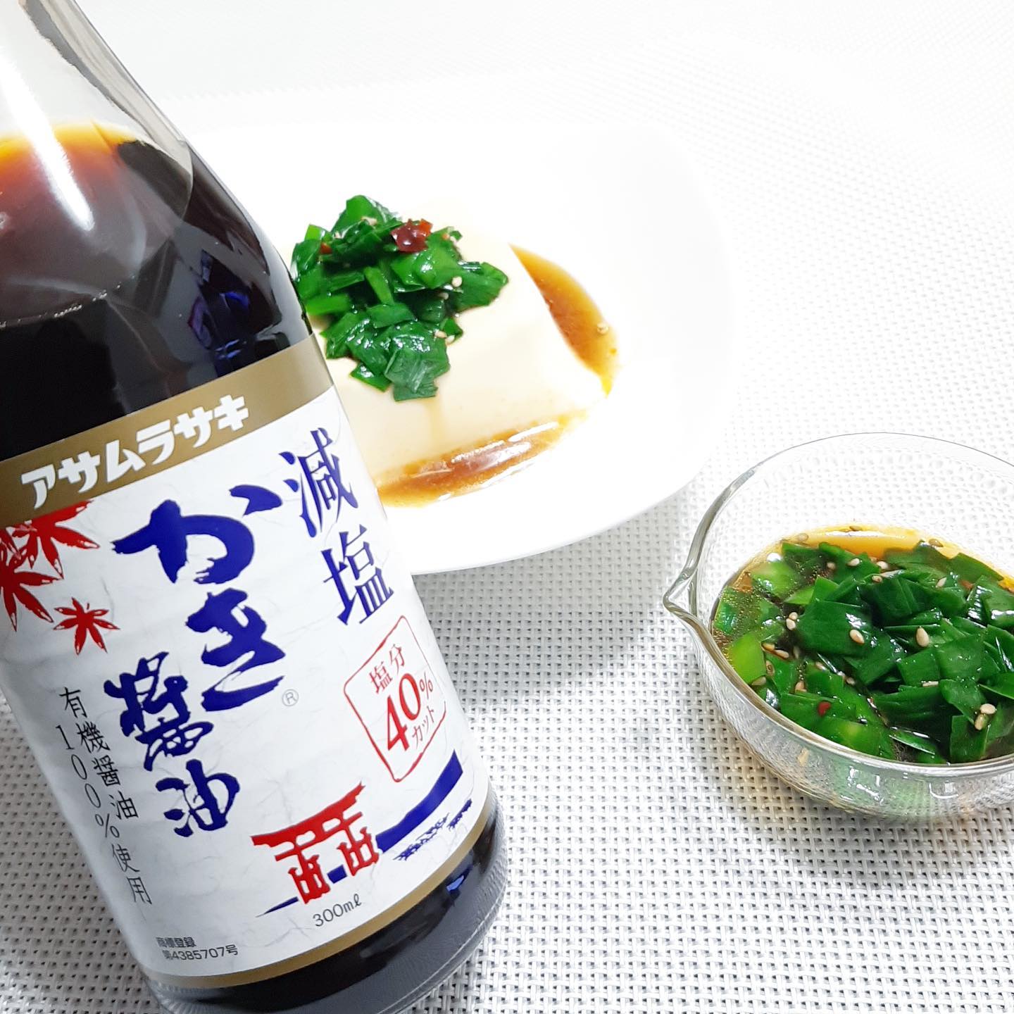 ・ ・ 『今日のごはん』 アサムラサキさま 『減塩かき醤油』を使って2種◡̈⋆ ---------------------- ★減塩かき醬油 有機醤油を使用し 通常の「かき醤油」と比べ塩分40%カット --------------------- ★減塩かき醤油のこだわり 広島産のかきエキス 国産のかつおぶし・昆布・しいたけなどの一番だしをブレンド お出しでうまみがアップ 甘みもあり減塩でも満足できる商品です! ----------------------- ★食べてみました ニラだれを作って『にら豆腐』 かき醤油に甘みがあるので お砂糖は少なめにしました。 塩分40%カットの減塩だと感じないぐらい 旨味や甘みがふわぁ〜と口に広がり 淡白なお豆腐が味わい深い1品に 『刺身醤油として』 まろやかな塩味で刺身ほんらいの味がよく分かる! これからお刺身は減塩しょうゆで食べたいと思いました。 ------------------------- ★他にもこんな使い方ができます 《そのまま使用》 卵かけごはん、納豆、たまご料理など 《うすめて》 ・かけうどん(10倍) ・おでん・寄せ鍋(8〜10倍) ・天つゆ、めんつゆ(4倍) これ1本で味が決まり時短料理に使えますし、 塩分が気になる方、浮腫みやすい方に おすすめです\(◡̈)/♥︎ #アサムラサキ #モニプラ #モニプラファンブログ #減塩かき醤油 #減塩しょうゆ #monipla #asamurasaki_fan #monipla #asamurasaki_fan #今日のごはん #今日のご飯 #料理すきな人と繋がりたい