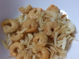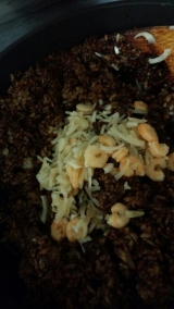 具はフリーズドライのえびと玉ねぎを使用し、ウスターソースとデミグラスソースをベースに味をつけました。