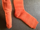突然ですが年を経るごとに冷え症が進んでいる気がします薄めのタイツやストッキングで自宅に入るともうひんやり過ぎてまるで氷の上に立っているかのような気分になります 世の中には昔と比べると本当に数え切れないほどのあったかグッズに溢れていてくつしたも色々とあたたか(そう)なものが販売されていますがこれだけ種類が多いと いったいどれが一番あったかいのよ!? なんでもいいから 一番あったかいのが 欲しいのよっ! と思ってしまいますよね というひとつの答えがこちら 商品名もずばりとにかく あったかい靴下 シンプルな判りやすい名前です さて最初から断っておきますがこの靴下は屋内用です。外出には無理です 何が特徴かっていうと とにかく ぶあつい んです ↑ ねっ?この手で掴んでいるのは半分に折ってますがこのぶあつさ 比較してみると ↓ こんなに違う! だから残念ですが屋内専用なんです・・・まるで毛布みたい・・・というのが第一印象でしょうか もうふわふわで実は意外に重い!ずっしりした靴下を計ってみたらなんとなんとの1足 75g ありました 贅沢仕様ですえへん って私が自慢してどうする 勿論男性用(大きいサイズ)もありますし色も5色 履き替え用にいくつか揃えたくなるかも 今回は冬にあったかイメージのアプリコットをお試ししていますがこの色も軽いレンガ色で本当にいい色だと思いますしかも先をくるっと返してショートソックスっぽくするとラインが見えてかわいい 左に置いたのはほんとうにモコモコと分厚いことを判っていただくためにふんわりと断面を見せておいてみたもの 右側はシンプルに普通に置いたものですがしっかりラインもやわらか=つまりかなりもこもこって判っていただけると思います 足先に白いラインがあるのはもしかしたらこの靴下は裏側もまるで表と同じように贅沢でしっかりとした作りになっているからお洗濯したりして裏返ったときに間違わないようにということかな?デザインとしてもワンポイントはGOODです 本当は素足に履きたいのですがなにせ靴下ですから・・・すねより上を生足にするわけにもいかず・・・結局薄手タイツの上から履いたりしています でも肌さわりは本当にさらさらででも履いているうちにぽかぽかと温まってきて足温浴しているかのような気分になれるってやっぱりすごい そしてゴムの部分は緩いので締め付けられませんそしてこの部分だけは薄めな生地です ところで自分史上一番温かかったのも株式会社山忠 【webshop温むすび】 さんの商品だったと思うのですがそのお品は相当相当に温かかったものの中に熱を逃がさないように入れていたものがビニールシートのようなもので使ううちにそのシートが外に出てきてしまい結局履けなくなってしまったという経緯があります でもあったかいって本当にしあわせになれる 特に3つの首(本当の首 足首 手首)を温めるのは理にかなっているんだそうで効果的なんだそうです。 ポイントは3つ吸湿発散に優れたウール混素材は温かくても蒸れにくい!→蒸れるとその後冷えて却ってよくないんですよね 床からの冷えを感じないくらいの分厚い生地→確かに これホント 二重構造パイルがしっかり保温→とっても温かいです が、厚すぎて物理的に靴は履けません 暫くはこのとにかく あったかい靴下を愛用していきたいと思いますが膝上を温め用に同じようなレギンスやタイツがあるといいなって思っています 根本的に冷えを解消するには運動なのでまぁそちらも根治という意味では何かしないといけないなと思う今日この頃 温むすび ってことばもかわいいですね! 春香 温むすび ファンサイトファンサイト参加中