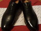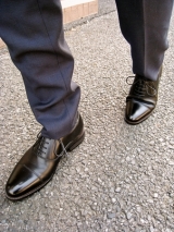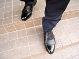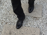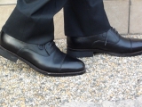⑥ 天然皮革(牛革)にアンティーク加工を施し、日本の職人により、一足一足丁寧に靴に表情をつける