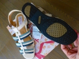 新緑の季節、お散歩に最高!そろそろサンダルの出番ですよ手にした瞬間、余りの軽さにびっくり!思わず量ってみたら、片足なんと200g!!パッチン止めですが、左右のゴムが延びるので外すことなく履けますかかと部分のクッションが優しくあたり、靴擦れを防ぐので、ガンガン歩いてもバンドエイドのお世話になる… 2016/05/08