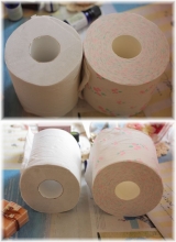 コレはイイ 今回モニターしていたのは「シュシュ」というトイレットペーパー 可愛い花柄+香り付き2倍だからかさばるかと思いきや普通巻きと比べて変わりません 左が普通巻き 右が2倍巻き高さはというと…若干2倍巻きの方が低いかな スペースはとらないのに2倍の巻きがあるのは巻きのキツさにあるようですよー… 2015/07/24