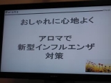 モニタープラザ様のプロジェクトに当選し アットアロマ(株)様の 「おしゃれに心地よく アロマで新型インフルエンザ対策」 のセミナーに参加させて頂きました 日時:10月8日(木)19302100 講義:新型インフルエンザの最新情報 施設導入事例等の紹介 … 2009/10/18