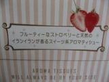モニタープラザ様で当選しました! クリネックス様「アロマティシュー」 アロマのティッシュ、初めて使います ラベンダーなどハーブ系の「コンフォートタイム」と ストロベリー&イランイランの「スイーツタイム」の 2種類ありました 私は「スイーツタイム」に応募していました 各5名… 2009/10/27