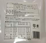 粉末状大豆たんぱく(国内製造)、ドロマイト(カルシウム・マグネシウム含有)、ココアパウダー、亜鉛酵母、食塩、イソマルトオリゴ糖/香料、甘味料(ステビア)、ビタミンC、ビタミンE、ピロリン酸第二鉄、ニコチン酸アミド、パントテン酸カルシウム、ビタミンB6、ビタミンB2、ビタミンB1、ビタミンD3、葉酸、ビタミンB12、(一部に大豆を含む)