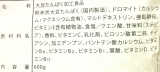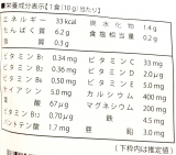 粉末状大豆たんぱく(国内製造)、ドロマイト(カルシウム・マグネシウム含有)、マルトデキストリン、亜鉛酵母、ビタミンE含有植物油、食塩/クエン酸、甘味料(ステビア)、香料、ビタミンC、乳化剤、ピロリン酸第二鉄、ナイアシン、加工デンプン、パントテン酸カルシウム、ビタミンB6、ビタミンB2、ビタミンB1、葉酸、ビタミンD、ビタミンB12