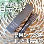 👀目元の悩みが出てきた方へ!お求めやすい薬用目もと用美容液!👀 ------------------------- アイ リンクルセラム 15g 3,740円(税込) ------------------------- 【特徴】 ・シワになりやすい目尻の肌状態をしっかりと立て直すため、 深層の“クッション性”と、角層の“ストレッチ性”に着目した目元用美容液。 ・目尻特有のシワを引き起こす原因深層の「しぼみ」、 ハリ不足原因角層の「横ゆるみ」の両方に働きかけ、 目もとにハリ・ふっくら感をもたらします。 【使用感】 柔らかいテクスチャーのクリームで伸ばしやすいです。 しっとりする使い心地もとても良いです☺️ 一回はあずき粒くらいの量で朝・夜使っても2ヶ月くらい使えそう✨ 子育てで目周りがびっくりするほどシナシナだったのですが、じっくり使ってます😍 お値段もリピートしやすいのが嬉しいと思いました✨ #アテニア #アイリンクルセラム #薬用目もと用美容液 #アイケアクリーム #エイジングケア #monipla #attenir_fan #アイケア #アイクリームレビュー #アイクリームレポ #アテニア好き #アイクリーム #アイクリーム好き #シワ #シワ対策 #シワ改善 #スキンケア #スキンケア好き #スキンケアレビュー #スキンケアレポ #美容好き 2022/02/25