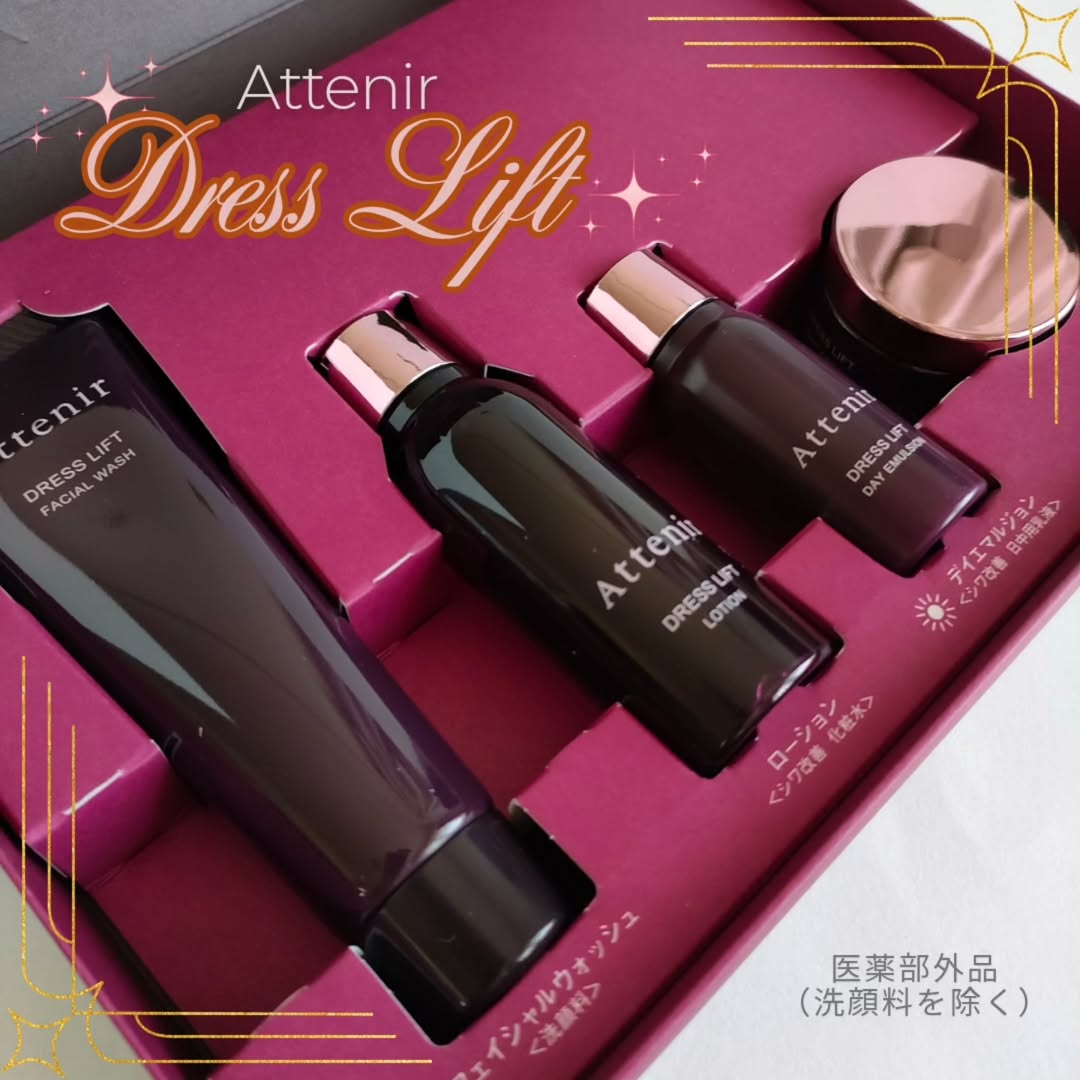 年齢を重ねるごとに肌悩みも重なってきました。乾燥、小じわ、シミ、ゆるみ、毛穴といったメジャーな悩みは当然として、他にも気になっている箇所多数です。リンクルクリームとか高濃度系セラムとか、色んな化粧品を買っては試しの繰り返しで、正直ちょっと疲れてきたな~と思ってきたんですよね(お金も時間もかかるし💦)。 出来ればベーシックなスキンケアだけで完結させたい。高品質で、長くリピしやすいもの、トライアルセットがあるとなお良し。そんな欲張った希望にもピッタリ沿ったのが、アテニアのドレスリフトシリーズです♡ 早速、ラインの全商品が14日間試せるお得なトライアルセットで試してみました。 ---------------------------------- アテニア ドレスリフト14日間体験セット ---------------------------------- ✨ドレスリフト フェイシャルウォッシュ しっかり濃密な弾力泡で洗えて贅沢気分が味わえる洗顔料。 ✨ドレスリフト ローション とろみ系はあまり好みじゃないけど、これはペタペタ感がなくて使い心地が良かった! ✨ドレスリフト デイエマルジョン 伸びが良く肌馴染みも早い♪ 夏でも快適に使える乳液です。 ✨ドレスリフト ナイトクリーム 夜のみ使用。ピタッと密着してくれるから、目の周りや口元部分には重ね付けしてます。 14日サイズとあるけど、もうちょい長く使えそうなくらい内容量もたっぷり。自分の肌に合うかどうかきちんと見極められそうです。あと、全商品うっとりするようなダマスクローズを基調とした香りになってて、アロマ的な楽しみもありました。自分の好きな香りだと自然と丁寧にお手入れ出来ますね。 個人的に満足感あるセットだったので、年齢とともに肌悩みが増えたスキンケア迷子さんにも、かなりマッチするんじゃないかな? おすすめです👍✨ #PR #アテニア #ドレスリフト #薬用エイジングケア* #薬用エイジングケア #monipla #attenir_fan *年齢に応じたケアのこと