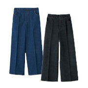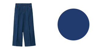 前立てやサイドにデニム見えするステッチ入り。センタープレス入りできちんと感を演出。