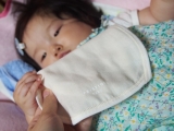 授乳の時にほっぺにあてて。くたびれてきたらおむつネットとして。