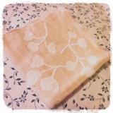 片面がやさしい肌触りのガーゼ、もう片面が吸水性のあるふんわりパイルで出来た、両面楽しめるアイテムです。丸みのある小さなリーフが散りばめられた、大人っぽく落ち着きのあるアイテムです。