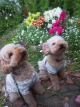 うちのトイプーのももちゃん(左)とはなちゃん いつもおそろのお洋服を着ている仲良し母娘です お散歩も大好き! おしりふりふり歩く姿は、もうたまらんくらいかわいいです! 【アックスデザイン】本革製ミニチュア犬の携帯ストラップ http//axdesignjp/SHOP/6… 2010/06/16