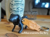 本革レザー素材でできた犬のミニチュア付きキーホルダーです。