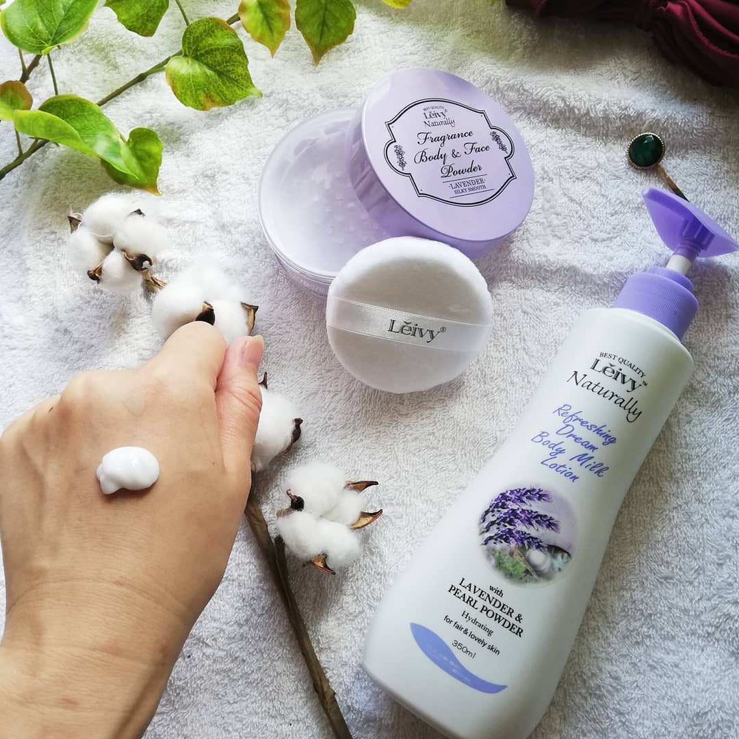 レイヴィー ボディローション&パウダー 大好きなレイヴィーの商品のご紹介です✨ 大人気のスウィートラベンダーバニラの香りの ボディローションとパウダー😍 ローションは カカオ バターとヒアルロン酸の 保水&保湿成分が角質層まで浸透し お肌にしっとり潤いを与えます💕 もうほんっとーに 香りのとりこ!!😍✨ そしてローションってより クリームって言ったほうがいいってくらい お肌がしーっとり☺️ のびもめちゃくちゃよくて たっぷり手にとってリンパマッサージしちゃった🤭 パウダーは ボディローションのあとに かるーくはたくと ほんとにサラッサラで こんなにきめ細かい肌だっけ?!って 錯覚しちゃうほど✨✨✨ これから汗や皮脂で ベタつく季節がやってくるから (て言うかもうきてますよね😭💦) これは素敵なアイテムと出会えたぞー💕💕 今ならお得に購入できる キャンペーンもやってるみたい! ぜひショップページを覗いてみてくださいね☺️✨ #レイヴィー #leivy #leivy_japan #ラベンダー #保湿 #保湿ケア #スウィートラベンダーバニラの香り #いい香り #monipla #axisjp_fan #ボディケア#香りフェチ#コスメ#スキンケア#ママリ#マッサージ