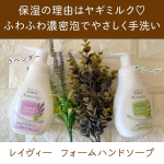 レイヴィーファン待望!レイヴィーシリーズから初のハンドソープが新登場♪手洗い・消毒による手肌の乾燥にも配慮して、保湿成分ゴートミルクを配合。さらに植物性オイルもプラス。潤い泡でやさしく手洗いができます。