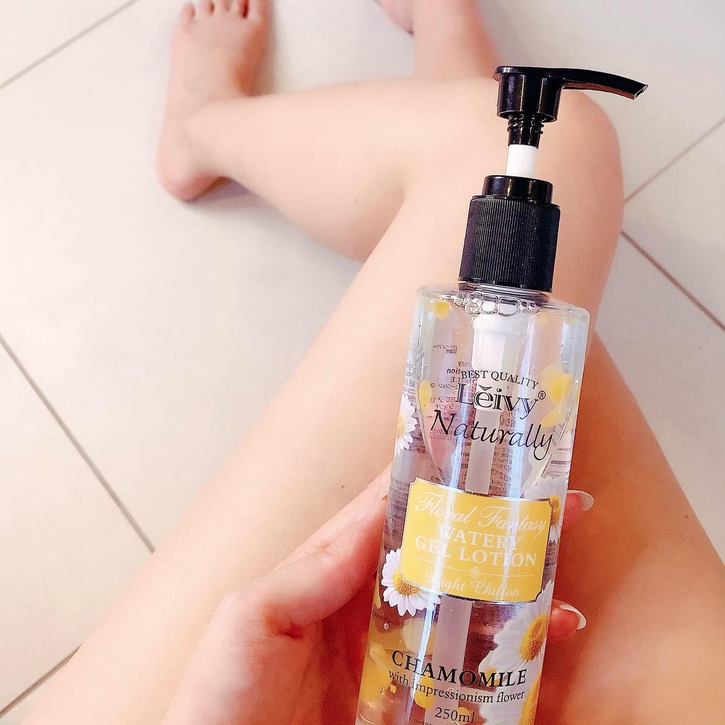 レイヴィーのファンタジージェルローションでお風呂上がりの保湿♪♪ ボトルの中の花びらが可愛い過ぎ♡ 伸びも良いからスーって塗って、でもしっかり潤うよ♪♪ カモミールの香りに包まれて寝るのって幸せ♡♡ #leivy_japan #レイヴィー #花びら香る #ボディローション #ジェルローション #インスタ映え #香りフェチ #みずみずしい肌 #ヤギミルク #monipla #axisjp_fan #足 #bodycare #leivy #カモミール #カモミールの香り #chamomile #humidity