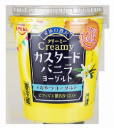 卵黄、生クリーム、バニラの香りで仕あげたちょっと贅沢な味わいが楽しめる酸味の少ないデザートヨーグルトです。
