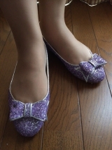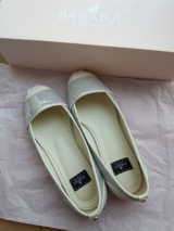 女性の誰もが目を惹くキラキラを施し、可愛くて上品な美しいBABARAらしいデザインのフラットシューズです。