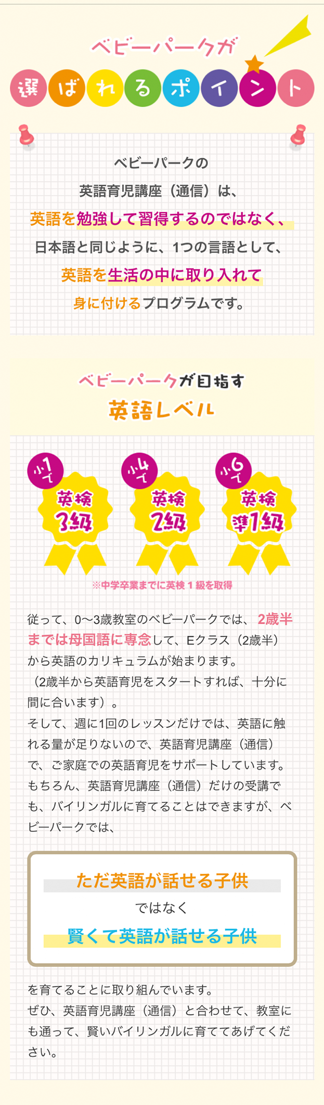 英語育児講座を終了後も、英検準1級レベルまで引き上げるプログラムでサポートします。