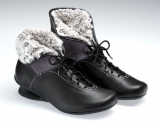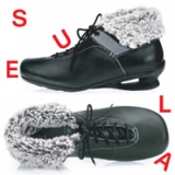 くるぶし周りのヌバックは、ペルシャグレーのフェイクファーで内張りし、折り返せばキュートに、また襟のようにたててお履きいただけばエレガントな装いを演出できます。ショッピングや美術鑑賞などちょっとしたお出かけにどうぞ。
