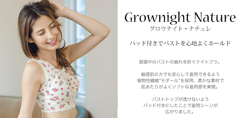 リラックスタイムや寝ている間のバストを守るナイトブラ「グロウナイト・ナチュレ」