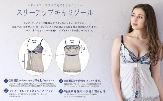 寄せ上げ効果で谷間をサポートする【スリーアップキャミソール】をお送りします!