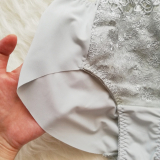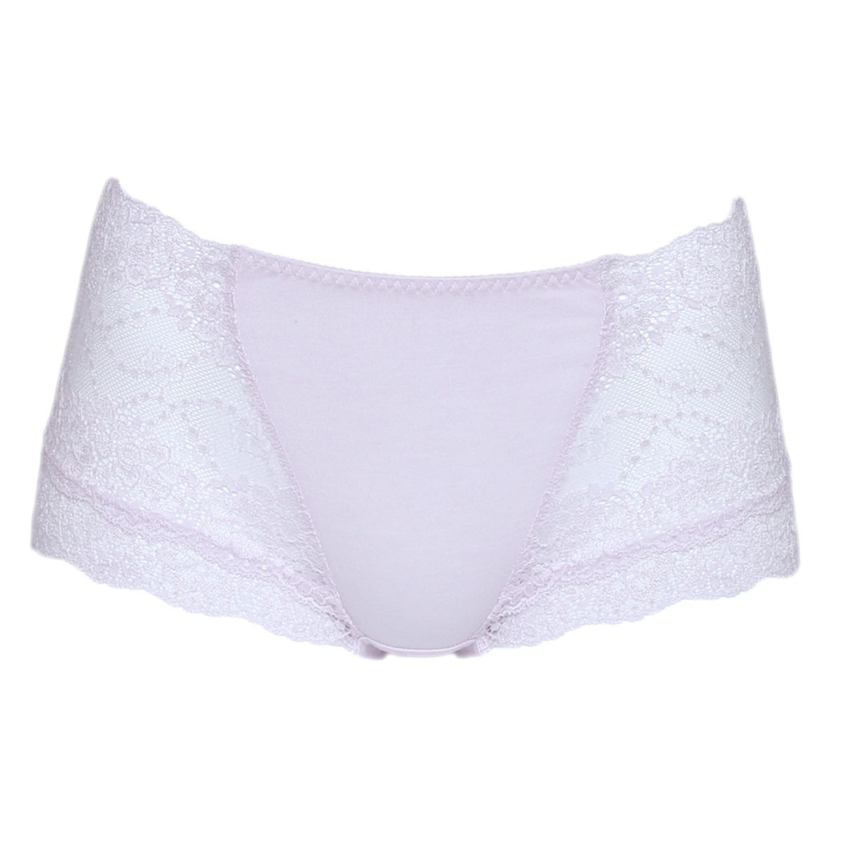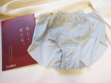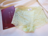 フロント部に保湿成分を配合した素材を使用。ウエスト、足口にゴムがないので食い込みません。肌あたりが良く、ストレッチ性に優れたレースを使用。立体裁断でヒップをすっぽり包み込んで丸みをキープしません。