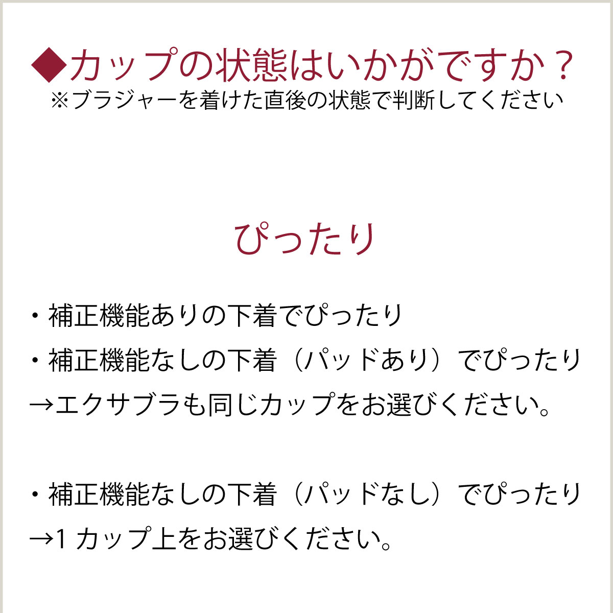 ※エクサブラは補正力が高いため、市販のブラジャーとサイズが異なる場合がございます。ご購入前にサイズチャートをご覧ください。