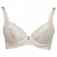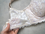 幅広のアンダーベルトには伸縮性の良いパワーネットとストレッチレースを使用し補正下着特有の締め付けを軽減。また、ワイヤーはクッションカップ台に埋め込み、肌あたりを優しくしました。