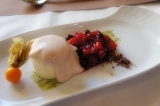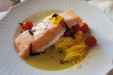 マイセン磁器製作所に到着し、2Fにあるレストランマイセンで美食ランチ (1Fには、カフェがあります) 全てマイセン食器でサービスされます 私達がいただいたコースには、『波の戯れ』が使われていました さざ波のような地模様と縁のシェイプが優美です 肉厚なサーモンのグリル とても柔らかく… 2016/01/29