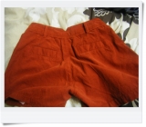 今日買ったボトムスがまるでかぼちゃの様 表 キュロットなのかな?短パンで思ったよりハイウエスト! 裏 裏側のポケットはフェイクポケット 生地はこんな感じで、秋向け 足元には、茶色いブーツ ボトムスには、このかぼちゃ色キュロット アウターに緑色のモッズコート 茶色い… 2011/10/24