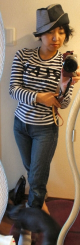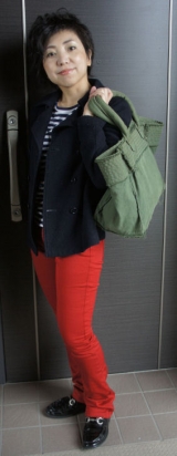 最近のコーデです これはお散歩コーデ 帽子は自分の手作りです ボーダーTは、PLAY ボーイズデニムをロールアップして 靴はコンバース これはお買い物コーデかな 赤いパンツを久社いぶりにはきたかった JKはジルだったかなぁ多分 この日もPLAYのボーダ… 2011/10/16