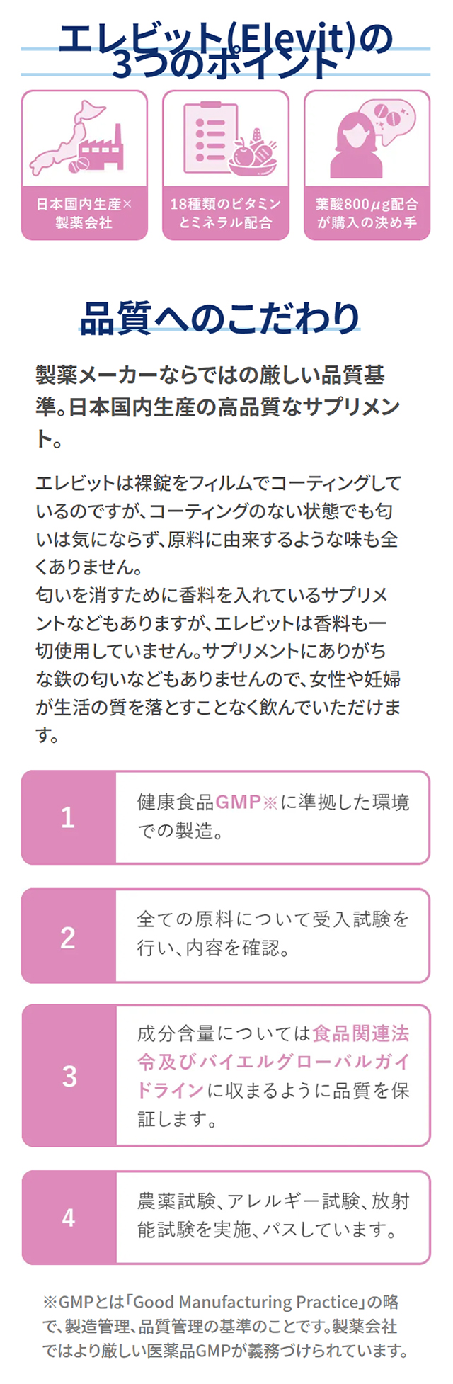 エレビットは製薬会社バイエル薬品が開発した葉酸を含むマルチビタミンサプリメントです。