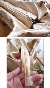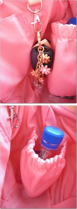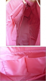 バッグの内側も春らしいピンクのナイロンを使用しているので、汚れも目立ちにくい。
