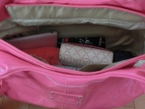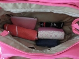バッグの内側も春らしいピンクのナイロンを使用しているので、汚れも目立ちにくい。